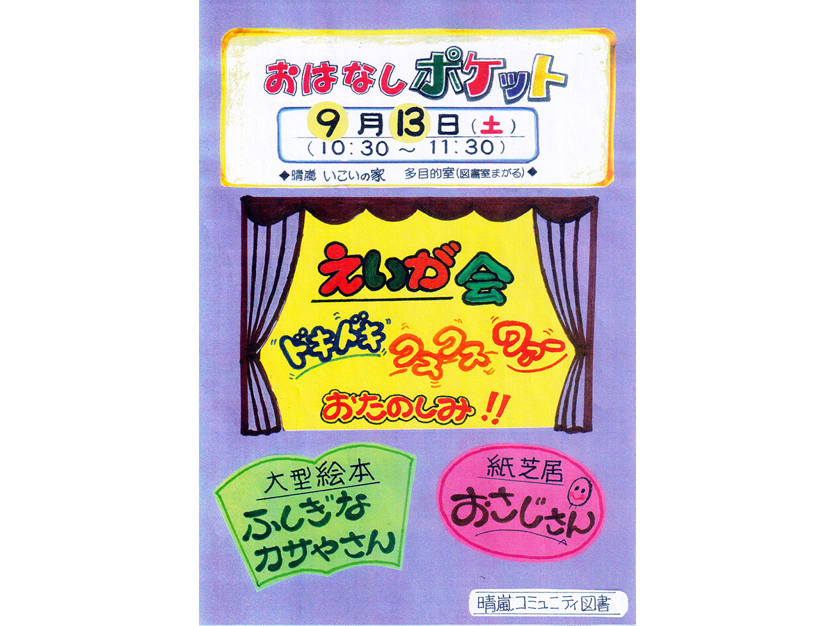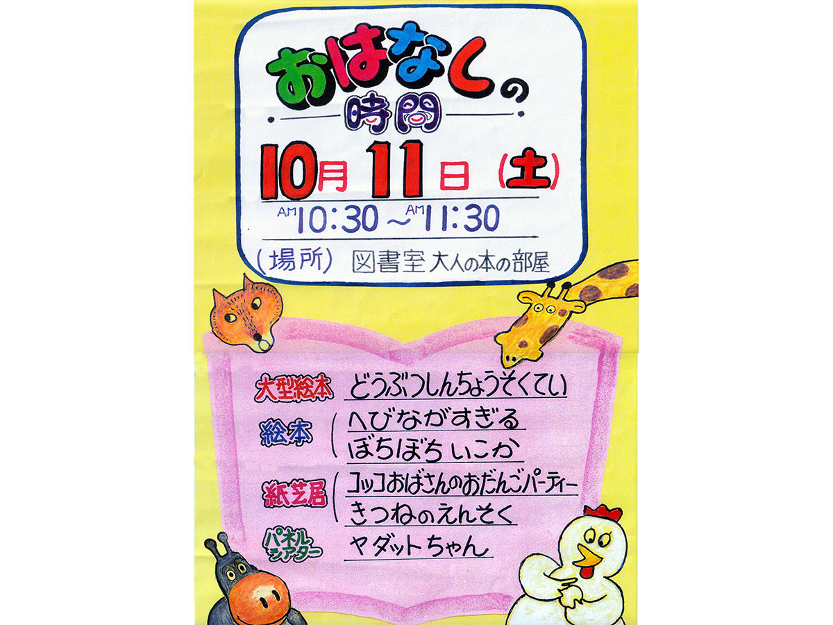 | ポスター・プログラム | めくり絵 | 大型絵本の読み聞かせ | 紙芝居 |